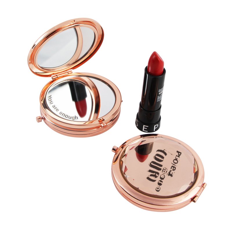 Rose gold crystal compact mirror, customized your own logo or arts on it. To make your own Unique business gifts.